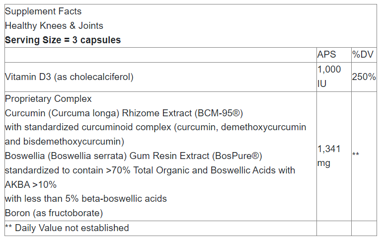 Award winning formula by Europharma, Healthy Knees & Joints combines two clinically-studied ingredients supporting healthy joint structure and the cushioning cartilage between the joints. Curcumin BCM-95, with up to 10 times the bioavailability of standard curcumin extracts and Boswellia BosPure. Added to this powerful combination are vitamin D3 and fructoborate, making Healthy Knees & Joints a clear winner supporting healthy bone, joint, and cartilage structure.