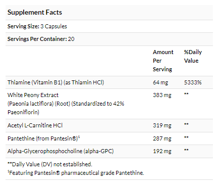 | Acetyl L-Carnitine HCl | 319 mg | ** |