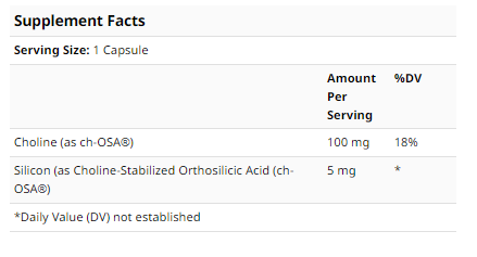 | Silicon (as Choline-Stabilized Orthosilicic Acid (ch-OSA®)) | 5 mg | * |