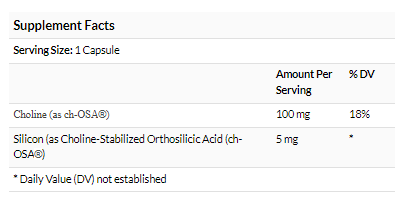 | Silicon (as Choline-Stabilized Orthosilicic Acid (ch-OSA®)) | 5 mg | * |