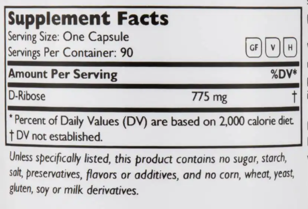 D-Ribose 90 Capsules Includes the Following Ingredients: