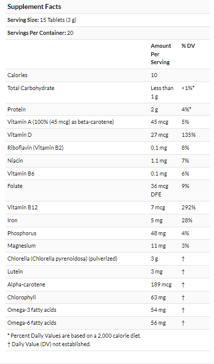 | Chlorella (Chlorella pyrenoidosa) (pulverized) | 3 g | † |