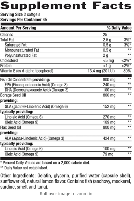 | GLA (gamma-Linolenic Acid) (Omega 6) | 152 mg | ** |