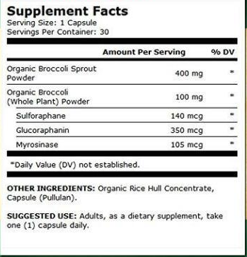 | Organic Broccoli Sprout Powder | 400 mg | * |