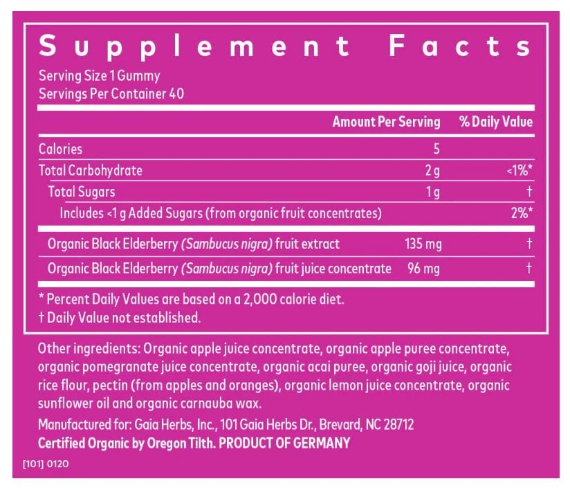 | Organic Black Elderberry (Sambucus nigra) fruit extract |