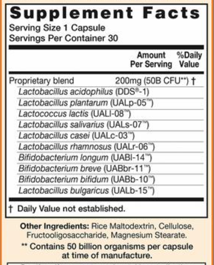 Other ingredients: Rice Maltodextrin, Cellulose, Fructooligosaccharide, Magnesium Stearate.