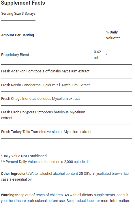 Other Ingredients: Water, alcohol content 25-35%, myceliated brown rice, cassia essential oil.