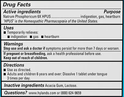 | Natrium Phosphoricum 6X HPUS | indigestion, gas, heartburn |
