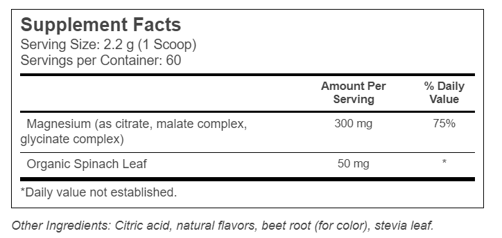 300 mg of Magnesium Combined with Organic SpinachHelps Maintain Nerve & Muscle FunctionMagnesium Whole Food BlendInnate® MissionWe are improving lives every day as leaders in the movement from reactive to proactive natural medicine.Purity Promise: Free of Magnesium Stearate, Wheat, No Artificial Colors or Preservatives.