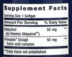 - Contains ultra-absorbable ubiquinol CoQ10 augmented with PrimaVie® shilajit to promote mitochondrial CoQ10 absorption to support greater cellular energy output