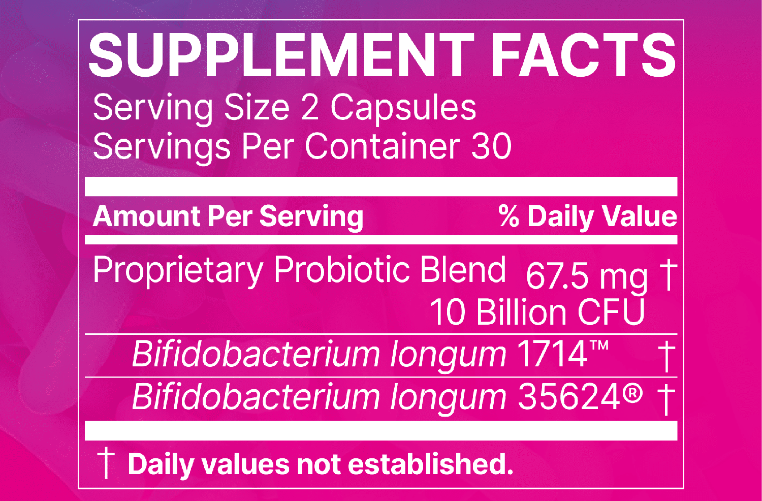 | Proprietary Probiotic Blend | 67.5 mg | † |