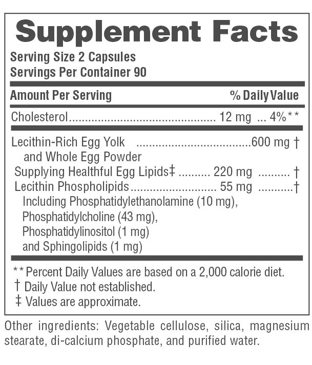 Egg Yolk Lecithin from NaturesPlus provides 600 mg of high-quality nutritional support for the body's natural immune defenses. Supports digestive health Nutritionally helps soothe and moisturize the skin Promotes healthy cholesterol for those already within normal ranges 350 mg of healthful lipids 70 mg of lecithin phospholipids
