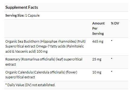 | Supercritical extract Omega-7 fatty acids (Palmitoleic acid & Vaccenic acid) | 100 mg | * |