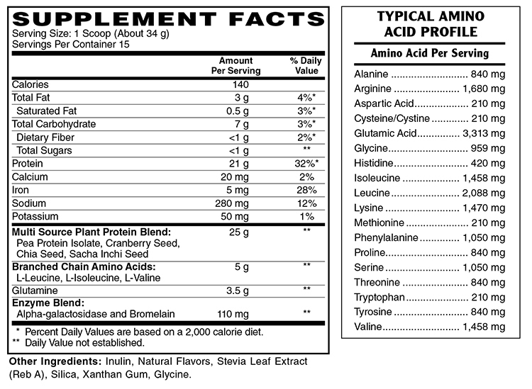 | (Pea Protein Isolate, Cranberry Seed, Chia Seed, Sacha Inchi Seed) | ||