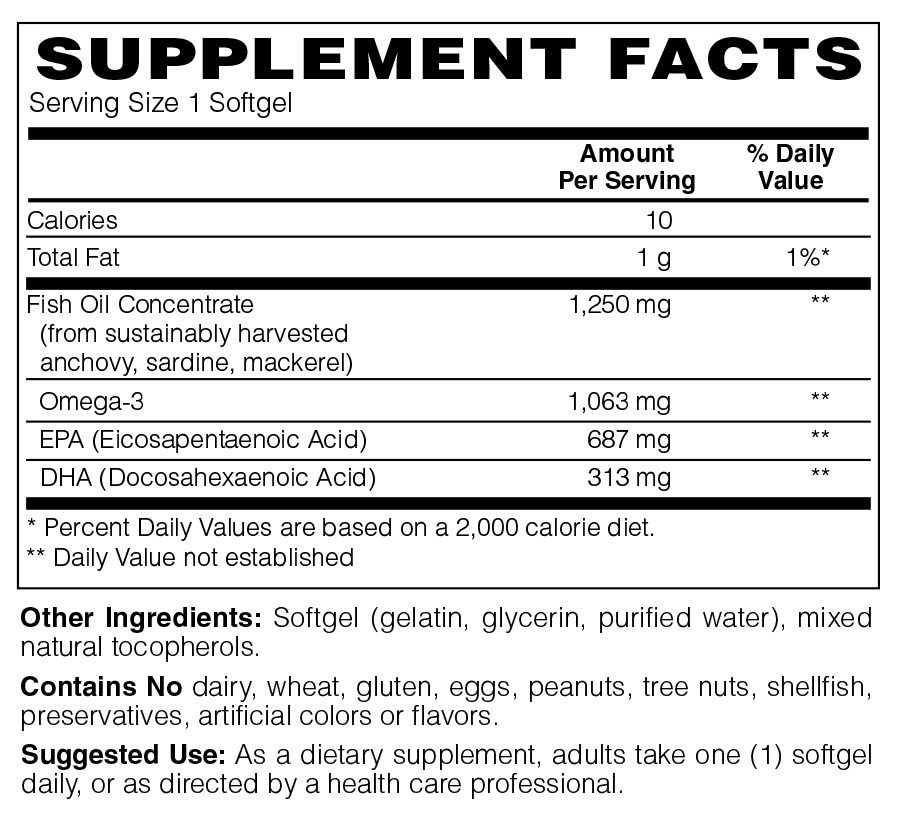 | Fish Oil Concentrate (from sustainably harvested anchovy, sardine, mackerel) |