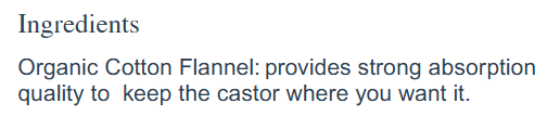 | Organic Cotton Flannel | provides strong absorption quality to keep the castor where you want it. |