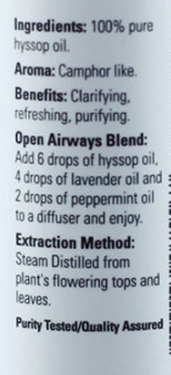 Ingredients: 100% pure hyssop oil