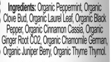 This 100% pure, undiluted USDA Certified Organic essential oil synergy includes the highest quality essential oils of Peppermint, Clove Bud, Laurel Leaf, Black Pepper, Cinnamon Cassia, Ginger Root C02, German Chamomile, Juniper Berry, and Thyme Thymol.