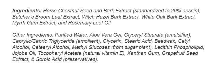 | Horse Chestnut Seed and Bark Extract (standardized to 20% aescin) |