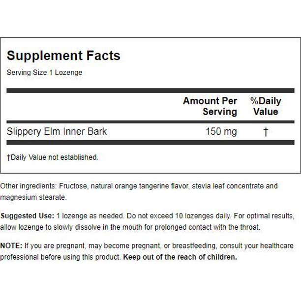 Slippery Elm (Ulmas Rubra) is a tree native to North America. The inner bark has been used for generations to soothe minor throat irritation associated with exposure to dust, excessive talking and other everyday activities. These Planetary Herbals Slippery Elm Lozenges are tangerine flavored for great taste.