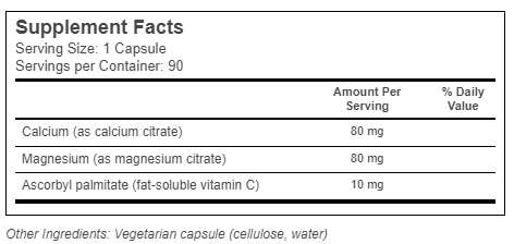 Hypo-allergenic Dietary Supplement Vegetarian Highly absorbable form of calcium, reduces risk of osteoporosis; combined with magnesium to support bone and cardiovascular health