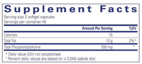 This soy-free, GMO-free and sunflower-derived phospholipid-bound choline supplement supports cellular function, cognitive function and liver health. It supports fat metabolism in the liver to promote energy production, and it benefits infant cognitive development during pregnancy. Phosphatidylcholine acts as a precursor (or, forerunner) for phospholipids and the neurotransmitter acetylcholine, which is involved in attention, memory and neuromuscular function.