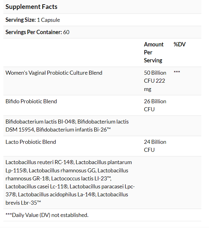A women's gut and vagina are home to two very different microbiomes. We created a product that supports both to address your unique needs. #1 Most Studied Strain Helps Maintain Healthy Vaginal Bacteria & Yeast Levels Supports Urinary, Digestive & Immune Health 12 Probiotic Strains Non GMO Project Verified Probiotic Supplement Trusted Wellness for Women. By Women. From The Maker of the #1 Women's Probiotic ...