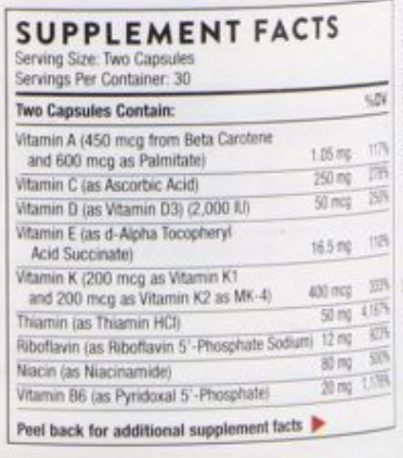 | Vitamin K (200 mcg as Vitamin K1 and 200 mcg as MK-4) |