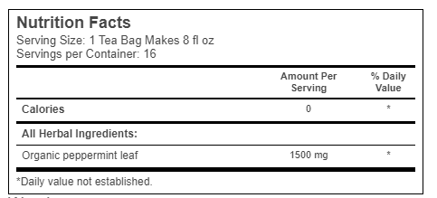 Herbal Power Soothes your belly and alleviates digestive discomfort Taste Aromatic, refreshing and undeniably minty. Plant Story We source this peppermint primarily from our partner-growers in the Pacific Northwest. Their pristine conditions and organic practices help us achieve a crop that's rich in essential oils, lending our tea its distinctive minty taste and its highly soothing digestive benefits. The perfect post-meal...