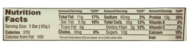 Serving size: 1 Bar (65g)