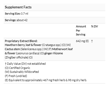 | Proprietary Extract Blend: Hawthorn berry, leaf & flower (Crataegus spp.) (O) (W) | 642 mg | † |