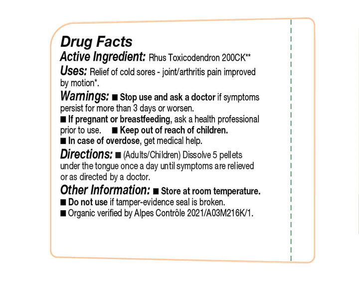 They may be painful and unsightly thankfully Rhus Toxicodendron 200CK is traditionally used for cold sores as well as arthritis pain affected by movement.