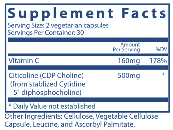 | Citicoline (CDP Choline) (from stabilized Cytidine 5'-diphosphocholine) |
