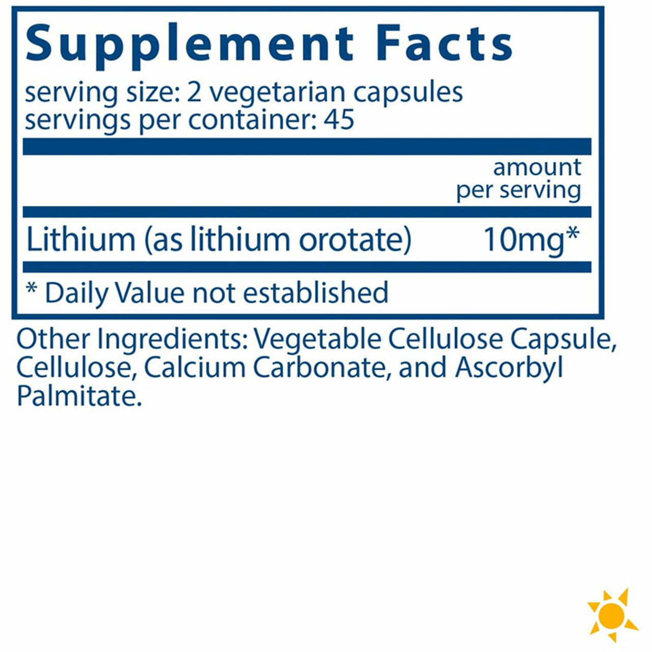 | Lithium (as lithium orotate) | 10mg | † |