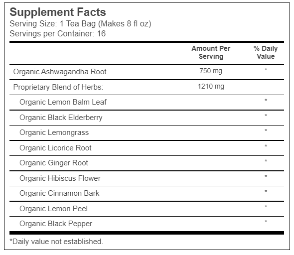 Suggested Use: Brew 1 tea bag in 8 fl oz of water.