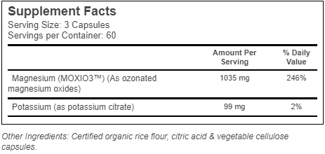 | Magnesium (MOXIO3™) (As ozonated magnesium oxides) | 1035 mg | 246% |