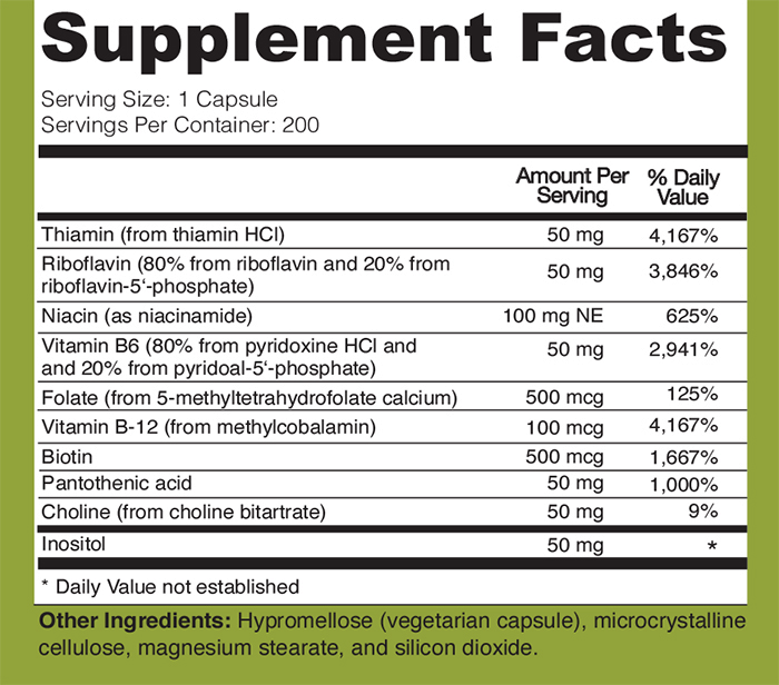 B vitamins are involved in a large and important group of metabolic functions in the human body. They must be replaced on a daily basis because they are water soluble, and therefore do not build up a reserve in the body. The easiest and best way to get what your body needs is to take a B-Complex supplement like Pathway B-Complex 50. Pathway’s formula contains the full complement of B-complex vitamins as well as coenzyme forms. B vitamins work as a team and should always be taken together in specific ratios like those found in this formula.