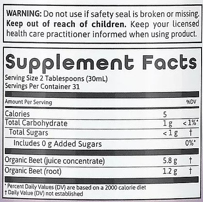 | Organic Beet (juice concentrate) | 5.8g |