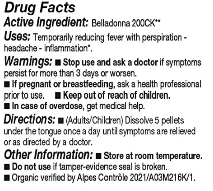 Product Description: Get your head on straight with Belladonna 200CK, traditionally used for temporarily reducing fever with perspiration, headache, and inflammatio Organic verified by Alpes Contrle 2021/A03M216K/1 Organic verified by Alpes Contrle 2021/A03M216K/1 Made in France Lactose-Free Organic Gluten-Free