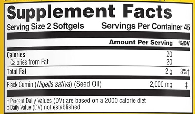 BLACK SEED OIL, COLD PRESSED 2000 MG
