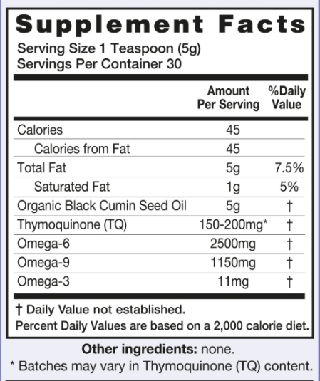 | Thymoquinone (TQ) | 150-200mg* | † |