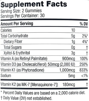 - Take two Vitamins A+D+K Gummies daily with food