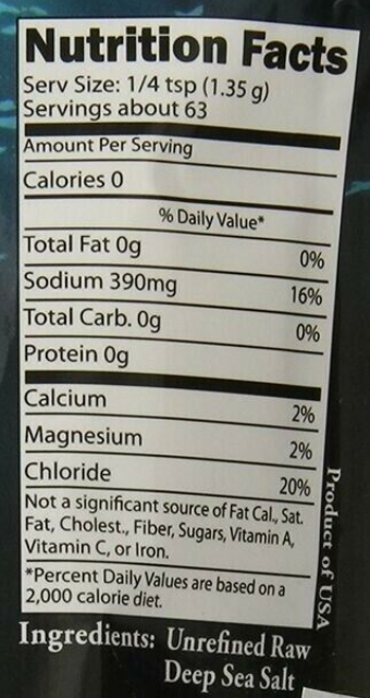 Makai pure deep sea salt provides 2 percent of your daily value of calcium and magnesium per serving. Enjoy its smooth flavor as a superior gourmet sea salt. Presented in this ready to use, refillable glass jar with built in grinder, it’s also available in a half lb. Maki pure “refill” bag-also sold on amazon.
