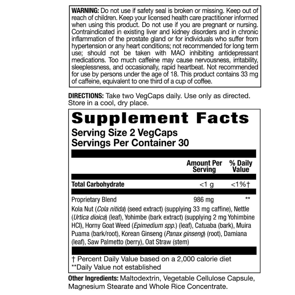 Cobra has been specially formulated using traditional herbs from around the world to support men’s performance and vitality. Unleash your potential with these specialized ingredients: Yohimbe Bark Extract. Legendary herb from Africa that contains Yohimbine, which is thought to provide nutritive support for healthy blood flow. Horny Goat Weed. From China, this aptly-named ingredient is thought to support nerve sensitivity. M...