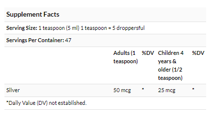 †According to the EPA (CASRN 7440-22-4) daily Oral Silver Reference Dose (RfD) applied to 10 ppm, one may ingest 178,850 servings safely over 70 years.