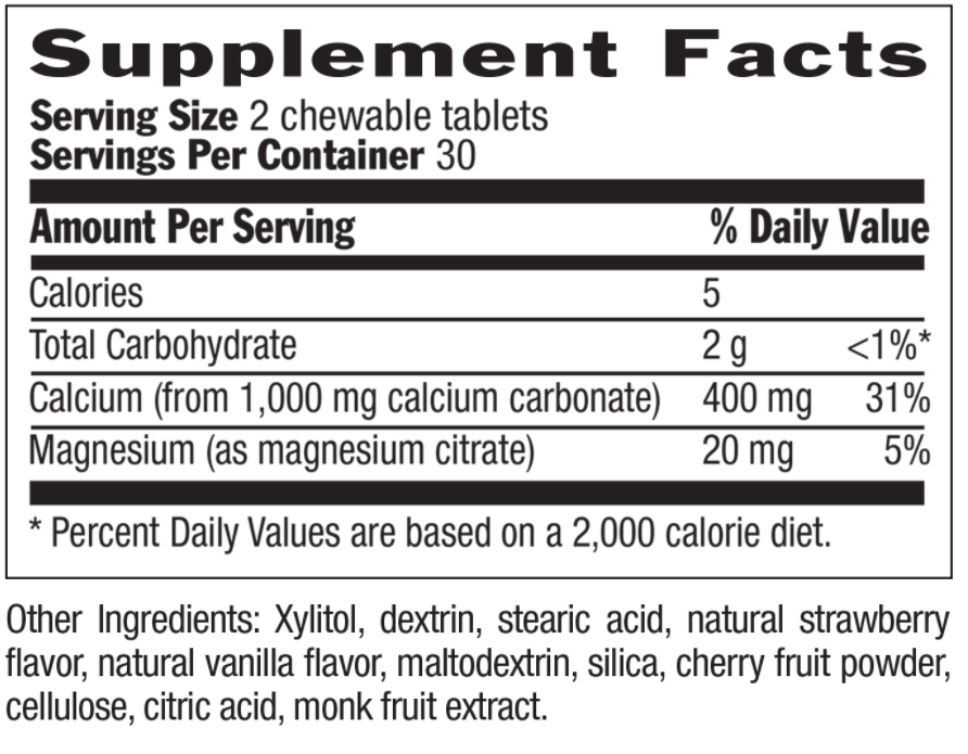 Serving size: 2 chewable tablets