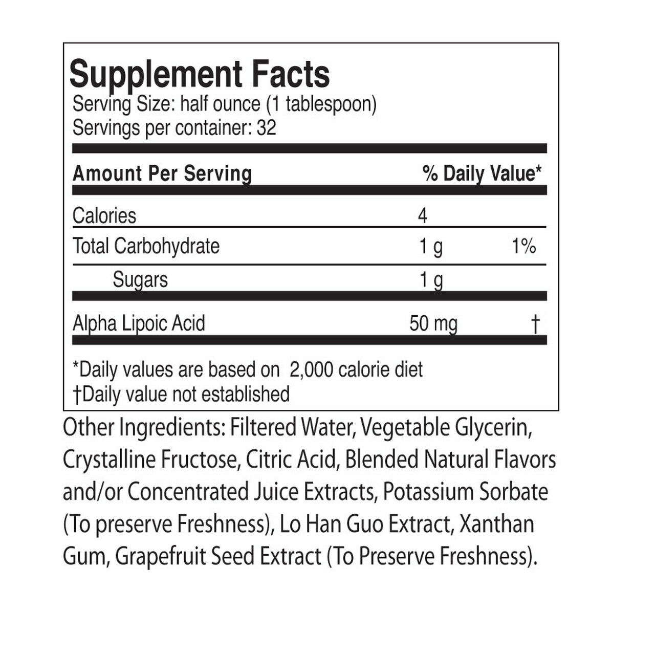 | Alpha Lipoic Acid | 50 mg | † |