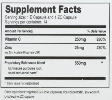 - Flu and Cold Relief: Zinc, Vitamin C and Echinacea capsules support the body's natural immune defenses to fight viral upper respiratory infections