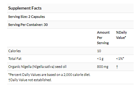 - Cold-pressed Black Seed Oil in a convenient capsule format.