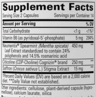 Neumentix spearmint extract contains phenolic compounds‚ including rosemarinic acid‚ that improve sustained mental focus and cognitive performance and support working memory for individuals experiencing age-related decline.